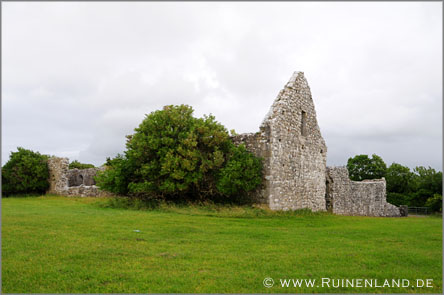Bereits auf dem Rückweg nach Galway machten wir noch Halt in Annaghdown, das mit gleich zwei kleinen Kirchenruinen, einer Abteiruine und einer Burg aufwartete. Die Abtei bestand bereits Mitte des 12. Jahrhunderts und wurde im 15. Jahrhundert erweitert. 1798 entfernte man eines der schmuckvollen Fenster und baute es in die protestantische Kirche ein, die heute ebenfalls nur noch als Ruine existiert.