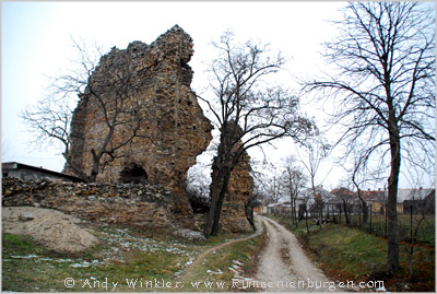 Mein nächstes Objekt der Begierde war das ruinöse Kastell von Ineu. Es hätte mich enorm gereizt, dort mal einen Blick hinein zu werfen, doch vorne war es verschlossen und rückseitig lag ein bewachtes Firmengelände. Auf der Straße sprach mich ein Mann an, der netterweise versuchte, mir etwas über das Gebäude zu erzählen. Leider verstand ich nur sehr wenig - im Grunde nur irgendwas mit Türken und dass man das Schloss wegen Einsturzgefahr nicht betreten dürfe. Schade, aber dennoch ein schönes Fotomotiv.