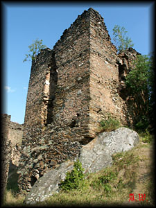 So sprachen wir ein Mädchen an und wollten uns nach dem Weg erkundigen. Sie sprach zwar kein Wort Deutsch oder Englisch, aber wir konnten uns trotzdem verständlich machen (nicht zuletzt, da Andrea ein wenig Italienisch konnte). Das Mädchen führte uns daraufhin zur Burg (erstmals urkundlich erwähnt Ende des 15. Jh.), wenngleich wir außer ein paar Brocken kaum etwas von dem verstanden, was sie uns unterwegs erzählte. Nach etwa 20 Minuten über steinige und verwilderte Pfade erreichten wir die Mauerreste von Cetatea de Colt - jene Burg, die einst Jules Verne besucht haben und von welcher er Inspirationen für sein Buch "Das Schloss in den Karpaten" erhalten haben soll.