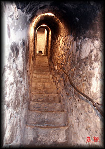 Drinnen war ich bei meiner Winter-Reise erst gar nicht, hatte ich es ja bereits 1995 gesehen. Es war inzwischen jedoch noch viel schlimmer, als ich es mir vorgestellt hatte. Im Inneren war bis auf den "Geheimgang" mittlerweile alles renoviert und weiß getüncht, was nun absolut nichts ansprechendes mehr für mich hatte. Zudem waren die Hälfte aller Zimmer abgesperrt und die Wege vorgeschrieben. Aufgrund der extrem hohen Besucheranzahl war in der Burg auch nur ein einziges Gedränge, so dass ich die Burg wieder verließ, sobald ich den Ausgang erreichte.