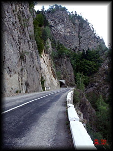 Diesmal war die kurvige Strecke, welche über mehrere Brücken und durch diverse Tunnel führt, jedoch relativ gut befahrbar (wenngleich die abgebrochenen & eingestürzten Mäuerchen vor dem Abgrund nicht gerade ein Gefühl von Sicherheit vermittelten). Am Vidraru Stausee angekommen, bot sich uns ein Bild von sehr schöner Landschaft. Die Straße führt genau über die Staumauer, was von oben jedoch schlimmer aussieht, als es beim Befahren tatsächlich ist.