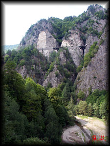 Über Campulung fuhren wir weiter nach Curtea de Arges (was ewig dauerte, da ich ständig LKWs vor mir hatte und sich kaum eine Überholmöglichkeit bot) und von dort weiter Richtung Norden nach Aref. Wir hielten kurz unterhalb der Ruine Poienari, welche Vlad Tepes einst von Zwangsarbeitern wieder aufbauen lies und schossen ein paar Fotos aus dem Tal, bevor wir weiter zum Stausee Vidraru fuhren. Im Winter konnte ich diese Strecke nicht fahren, da der Pass durch eine Lawine versperrt war und er in dieser Jahreszeit zudem zu einem der gefährlichsten Pässe Rumäniens zählt.