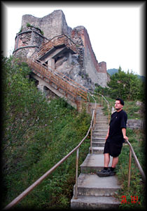 Wieder unter der Burgruine Poienari angekommen stellten wir das (inzwischen völlig zugestaubte) Auto ab und stiegen die rund 1500 Stufen zur Ruine hinauf. Nicht so anstrengend, wie im vereisten Winter, aber trotzdem nicht gerade erholsam. Auf etwa halben Weg entrichteten wir den Eintrittspreis von 20000 Lei (+ 10000 Lei fürs Fotografieren) und kamen nach etwa 30 Minuten oben an. Bereits im Winter störten mich die vielen Metallgerüste, aber im Sommer hatte die Ruine so gar nichts mystisches mehr an sich. Der Rundblick war schön, aber längst nicht so imposant, wie im kargen & kalten Winter. Zudem steht von der Burg selbst auch nicht mehr viel, zumal Anfang des 20. Jahrhunderts große Teile der Mauern bei einem Erdrutsch den Hang hinter stürzten.