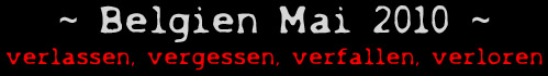 22. Mai 2010 - Nach der Tour im Winter und einem weiteren zweitägigen Trip nach Belgien Anfang April hatten Miri und ich Blut geleckt. Das Land bot noch so viele "Lost Places", dass wir Belgien diesmal großflächiger erkunden wollten; im Westen bis zur Atlantikküste und im Osten zurück. Wohl wissend, was dies für uns bedeuten würden: viel Fahrerei und wenig Schlaf, aber dafür eine Menge interessanter und lohnenswerter Locations. Da ich mittlerweile eine Vielzahl unterschiedlicher Objekte ausfindig machen konnte, konzentrierten wir uns überwiegend auf verlassene Schlösser, wenngleich wir selbst diese zeitlich kaum alle schaffen würden. Bei manchen der von uns besuchten Orte habe ich in diesem Reisebericht bewusst keine genauen Namen angegeben.