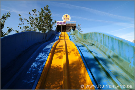 Gegründet 1950, war der Dadipark einst der älteste Vergnügungspark Belgiens. Im Jahr 2000 verlor ein Junge bei einem schweren Unfall in der Aqua-Jet-Anlage einen Arm. Daraufhin wurde in den Park nicht mehr investiert und sein Verfall schritt zusehends voran. In der Saison 2002/2003 wurde der Park schließlich geschlossen, Pläne für eine Modernisierung und Wiedereröffnung wurden nie umgesetzt. Mittlerweile ist der Park in einem derart desolaten Zustand, dass eine neue Nutzung des Areals, in welcher Form auch immer, nur noch mittels vorherigem Einsatz von Abrissbaggern und Planierraupen realisierbar wäre. Traurig; hier ist jegliches Kinderlachen schon seit Jahren verstummt...