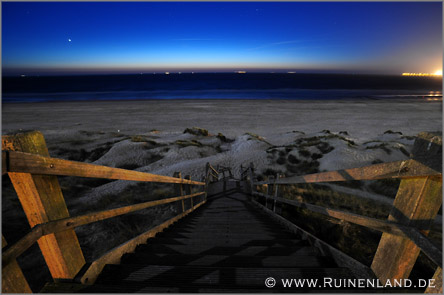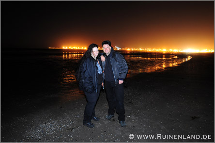 Wellen brachen sich rauschend am Strand, am Horizont bewegten sich die Lichter