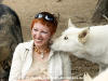 vehicle. It is led by an older lady, the animals are held in big enclosures.