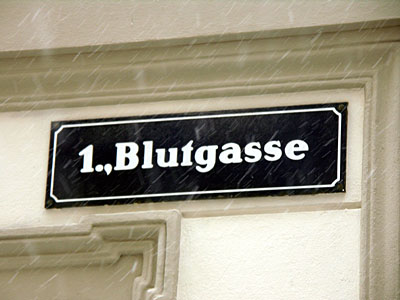 Die Blutgasse (Haltestelle „Stephansplatz“) mündet in die Domgasse beim Figarohaus, wo Mozart einen Teil seines Lebens verbrachte und viele seiner Werke schrieb. Links und rechts der mit Backsteinen besetzten Blutgasse klaffen Fassaden uralter Häuser in die Höhe. Sie gehören zu den ältesten in Wien, zumindest die Fundamente, welche aus dem 12. Jahrhundert stammen.