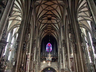 Die Anfänge des Domes (Stephansplatz, Eintritt frei, Führungen 4 Euro, Turmbesteigung 3 Euro) gehen auf das Jahr 1137 zurück, wobei an der Stelle der Kirche schon im Frühmittelalter ein Friedhof gewesen zu sein scheint. Fertig gestellt wurde die erste Kirche 1147; sie war für die damalige Stadt jedoch völlig überdimensioniert, weshalb man vermutet, dass es zu diesem Zeitpunkt schon Bestrebungen gab, sie in eine Bischofskirche zu verwandeln. 1230 – 45 entstand ein weiterer spätromanischer Bau. 1258 brach ein Brand aus, in der ersten Hälfte des 14. Jahrhunderts wurde der Chor vergrößert und ausgebaut. 1469 wurde Wien zum Bistum und der Stephansdom dadurch zur Kathedrale erhoben. Im zweiten Weltkrieg brannte der Dom aus; er wurde wieder aufgebaut und 1952 wiedereröffnet.