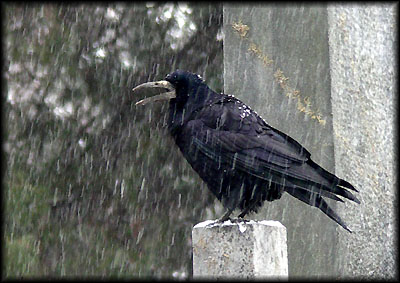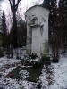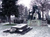 Nach deren Besichtigungen bog ich schräg links ab und folgte einem schier endlosen Pfad zwischen Gräbern, auf denen Krähen ihre Spuren im Schnee hinterlassen hatten. Die dortigen hohen und dichten Bäume schützten mich zudem für kurze Zeit ein wenig vor Wind und Schnee. Mehrfach erblickte ich alte Gräber und vereinzelte Statuen, welche mich wiederholt dazu veranlassten, den ursprünglich gewählten Weg zu verlassen und die Richtung zu wechseln. Nach einer guten Stunde wusste ich nicht mehr wirklich, wo ich nun war. Mit Hilfe eines Plans, den man in jedem Fall bei sich führen sollte, fand ich mich jedoch schnell wieder zurecht und erreichte schließlich das Grab von „Hans Hölzel“, besser bekannt als „Falco“ (zu finden in Gruppe 40).