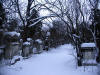 Ich stieg nahe der alten jüdischen Abteilung im Nordwesten aus, in welcher ich unzählige alte und mit Efeu bewachsene Grabsteine fand. Vor allem die Seitenpfade zwischen schneebedeckten Bäumen und Büschen waren sehr reizvoll.