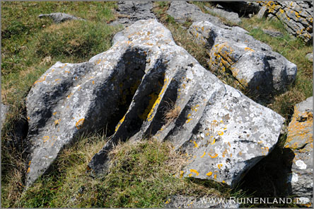 Nach einer kurzen Besichtigung des Newtown Castle, ein runder Burgturm aus dem 16. Jh., bogen wir in die Karstlandschaft der Burren ab. Der Burren, zu deutsch "steiniger Ort", umfasst eine Fläche von 250 km² Kalksteingebiet. Die Oberfläche der Burren ist durch etwa knietiefe Karren (durch Verwitterung und Oberflächenwasser entstandene Rinnen) in rechteckige Felder gegliedert, was landschaftlich ein oftmals surreales Bild erzeugt.