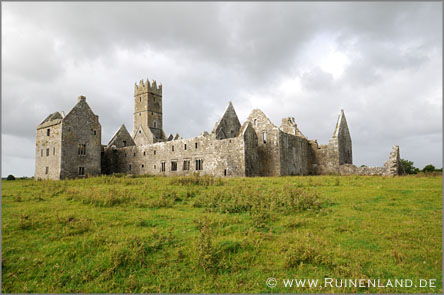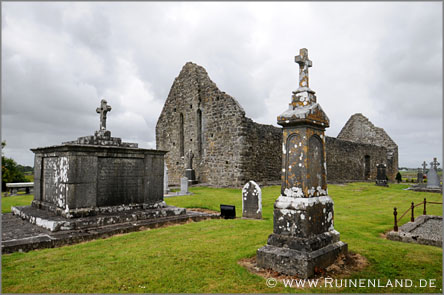 Die mittelalterliche Ruine der Ross Errily Friary nordwestlich von Headford darf zweifelsohne als Highlight des Tages bezeichnet werden. Gegründet wurde die großflächige Klosteranlage der Franziskaner im Jahr 1351, im 15. Jahrhundert wurde sie umfassend erweitert. Im Rahmen der Englischen Reformation wurden im Jahr 1538 alle 200 Mönche aus der Abtei verbannt und zum Teil getötet. Auch die folgenden Jahrhunderte waren gezeichnet von wiederholter Vertreibung, Verfolgung und Rückkehr der Franziskanermönche. Im 18. Jahrhundert wurde das ruinöse Kloster nur noch von drei Mönchen bewohnt und 1832 endgültig geschlossen.