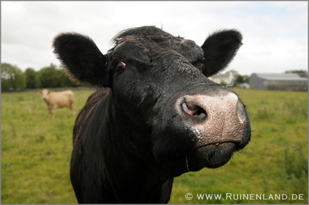 An der nächsten Ruine, dem Moyne Castle aus dem 16. Jahrhundert, legten wir aufgrund erneut über uns hereinbrechenden Regens nur einen kurzen Stopp ein. Zudem wurde die Burg als Kuhstall genutzt und war wegen der Hinterlassenschaften dieser Tiere eh nicht sauberen Fußes zu betreten. Zurück am Auto, fuhr zu unserer Verwunderung genau jener Touri-Bus an uns vorbei, dem wir zuvor an der Ross Errily Friary begegnet sind. Da hatten die Teilnehmer dieser Rundreise nun wirklich kaum Zeit, sich die Klosteranlage in Ruhe anzuschauen, für deren Besichtigung wir bereits gut zwei Stunden benötigten. Grund genug, auch zukünftig lieber auf eigene Faust loszufahren, anstatt an solch einer Bustour teilzunehmen. Auf wenig Zeit und ständig Leute im Bild kann ich dann doch gerne verzichten!
