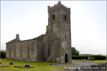 Bereits auf dem Rückweg nach Galway machten wir noch Halt in Annaghdown, das mit gleich zwei kleinen Kirchenruinen, einer Abteiruine und einer Burg aufwartete. Die Abtei bestand bereits Mitte des 12. Jahrhunderts und wurde im 15. Jahrhundert erweitert. 1798 entfernte man eines der schmuckvollen Fenster und baute es in die protestantische Kirche ein, die heute ebenfalls nur noch als Ruine existiert.
