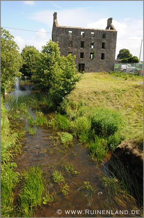 50 Km von Galway entfernt besichtigten wir in Ballinrobe die nördlichsten Ziele unserer Irland-Tour. Kalter Wind ließ reichlich ungemütliche Temperaturen aufkommen, als Birgit und ich vorbei an den Ruinen einer Kavallerie-Festung aus dem 18. Jahrhundert zu den Ruinen des Ballinrobe Castles liefen. Die von der Familie Bourke erbaute Burg wurde 1653 von der Familie Nolan gekauft und später von James Cuffet restauriert. Das Kriegsministerium erwarb Ballinrobe Castle 1821 und nutzte es als Kaserne. Leider waren die Ruinen mit einem Metalltor verschlossen. Um sie zu erkunden, hätten wir eine schmale Mauer entlang klettern müssen, neben der es rund 5 Meter in die Tiefe ging, zudem wäre dies den uns beobachtenden Anwohnern kaum entgangen. Deshalb blieben uns leider nur Außenaufnahmen.