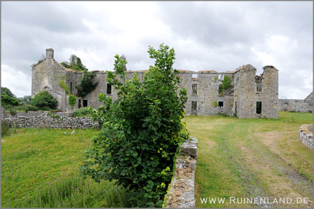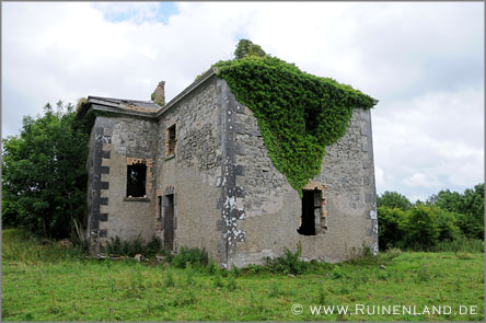 Von der Burg aus entdeckte ich auf der anderen Seite des Flusses durch die Bäume noch eine weitere Ruine, die es zu erkunden galt. Da vor dem Anwesen Bauarbeiten im Gange waren, stand das Tor glücklicherweise offen, so dass wir das Grundstück ungehindert betreten konnten. Cranmore House wurde 1838 von Alexander Lambert auf dem Grundbesitz von Oberst C.N. Knox erbaut. Als die Steuern zu hoch wurden, wurde es 1940er Jahre verlassen und verfiel zur Ruine.