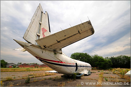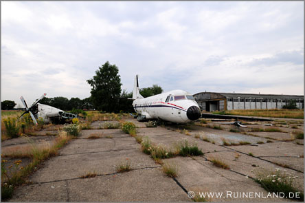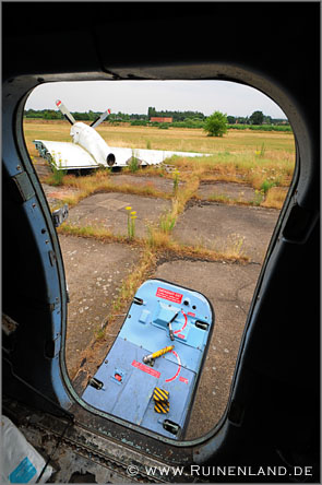 Nach zwei Fotostopps am Kasteel Exaierde (gänzlich entkernt) und dem Kesselhof (noch in Nutzung) fuhren wir über teils unbefestigte Nebensträßchen sowie durch kleine Dörfer in abgelegenes Gebiet, während dessen zwei weitere angedachte Lost Places wegen Unzugänglichkeit ausfielen. Am nächsten Ziel angekommen fand sich im hinteren Teil des Areals ein Loch unten im Zaun, allerdings so schmal, dass Miri und ich gerade so auf dem Bauch kriechend hindurch passten. Vorbei an vereinzelt noch genutzten Hallen liefen wir über das einsichtige Gelände, von dem mir kurz zuvor von einem ausrangierten Flugzeug berichtet wurde. In jedem Fall eine interessante und mal etwas andere Location. Dennoch ließen wir uns dort letztendlich viel zu wenig Zeit, um nicht das Risiko einzugehen, doch noch gesehen zu werden.