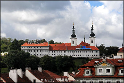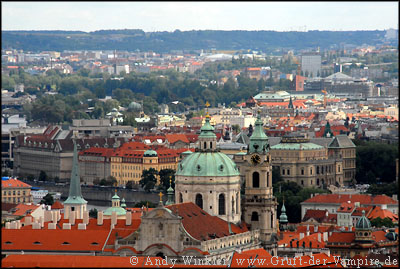 Blick von der Burg auf die Karlsbrücke (Karluv most) und das Kloster Strahov