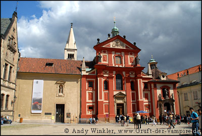 Eigentlich hätte ich mir als nächstes gerne den mächtigen Sankt-Veits-Dom inmitten des dritten Burghofs angeschaut; dieser kostete allerdings nochmalig zusätzlichen Eintritt und zudem war die Schlange der davor stehenden Touristen wirklich endlos lang. So verzichtete ich auf einen Besuch und besichtigte stattdessen die St.-Georgs-Basilika, welche in meiner Karte mit enthalten war.