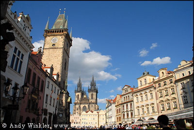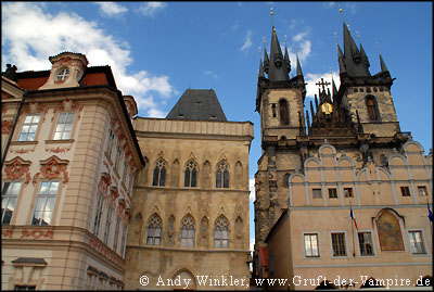 Ich schlenderte durch verwinkelte Gassen mit hohen Häuserfassaden, die an eine Mischung aus Edinburgh (Schottland) und Cluj-Napoca (Rumänien) erinnerten, und kam so zum Altstädter Ring. Schon im Mittelalter war er ein wichtiges Zentrum der Stadt und noch heute sind die bunten Bürgerhäuser jener Zeit zu bewundern. 1422 wurde hier der Anführer der Hussiten, Jan Zelivsky, hingerichtet, knapp 200 Jahre später insgesamt 27 tschechische und deutsche Adlige. Auch war der Altstädter Ring Schauplatz einer der berühmten Prager Fensterstürze: Am 30. Juli 1419 warfen protestierende Anhänger der hussitischen Lehre die Stadtoberen aus dem Rathausfenster, geradewegs in die Spieße und Lanzen der unten wartenden Menge. Das war der blutige Auftakt zur hussitischen Revolution. Der zweite und folgenschwerere Prager Fenstersturz ereignete sich am 23. Mai 1618, als protestantische Adlige zwei Stadthalter samt Sekretär seiner katholischen Majestät Ferdinand II aus dem Fenster der Prager Burg warfen und so den Dreißigjährigen Krieg herbeiführten. Die beiden Stadthalter überlebten übrigens, da sie in einem Misthaufen landeten ;-)