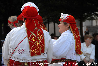 In Tracht gekleidete Frauen tanzten zu volkstümlicher Musik auf der Straße, als ich weiter zum Wenzelplatz ging, der als Herzstück der 1348 von Karl IV. gegründeten Neustadt angelegt wurde. Ehemals bildete die Stadtmauer mit dem Rosstor seine südliche Begrenzung, die später dem Nationalmuseum weichen musste.