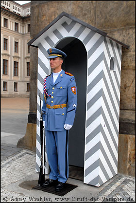 Ich kam an unzähligen schmuckvollen Gebäuden mit verzierten Fassaden vorbei, optisch jedes für sich ein eigenes, kleines Schloss. Es war kurz vor 12.00 Uhr, als ich am Westflügel das "Tor der Giganten" zum ersten Burghof erreichte und die dortige Anzahl der Touristen überstieg meine schlimmsten Befürchtungen. Die Massen warteten auf die bevorstehende Wachablösung, die hier jeden Mittag zelebriert wird. Ich fand das militärische Gehabe jedoch nur minder interessant. Deshalb verließ ich den Hradschinplatz nach ein paar Fotos recht schnell wieder und umrundete die Burg zur Hälfte durch die Südgärten, in denen diverse Fotos von Salvador Dali ausgestellt wurden.