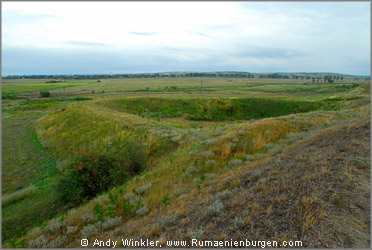 Im Nachbarort Biharia (Bihor) machte ich einen Stopp bei der Erdfestung, welche bereits im 10. Jahrhundert erbaut wurde (Erdburgen waren Vorgänger späterer Holz- und Steinburgen). Da sich durch Verwitterung, Abtragung und Überbauung nur wenige dieser Erdburgen gut erhalten haben, ist Biharia historisch zwar interessant, bot für mich als "Ruinenfan" abgesehen von ihren Ausmaßen (das Foto zeigt nur einen geringen Teil) aber kaum Aufregendes.
