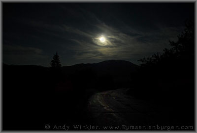 Die Stimmung war sehr atmosphärisch, aber irgendwie selbst mir etwas zu klischeehaft: Über uns stand das blutrot beleuchtete Dracula-Hotel, der Mond schien auf den Borgopass und im Tal heulten die Wölfe. Bram Stoker hätte hier sicherlich seine Freude gehabt ;-)