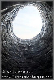 Die Eltern meiner Internet-Bekannten freuten sich, mich kennen zu lernen und nach einem kurzen Gespräch, bei dem man uns alte Fotos der Kirchenburg und des gestohlenen Flügelaltars zeigte, führte uns der Vater (Andreas) zur Kirchenburg hinauf. Die äußere und innere Ringmauern waren noch zu sehen, wenngleich letztere in Teilen eingestürzt war, zudem Reste von zwei Wehrtürmen. Eine liebevolle und informative Führung bis hinauf in den Glockenturm, welcher über steile Leitern zu besteigen war. Somit hatte der Tag trotz aller Rückschläge zumindest noch ein gelungenes Happy End.
