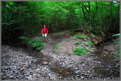 im Wald ab und gingen das letzte Stück zu Fuß, bei dem wir vier Mal den Bach
