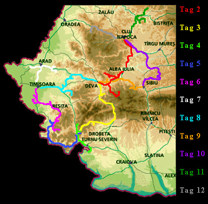 Gegen 21.30 Uhr landeten wir in Cluj-Napoca (Klausenburg), wo uns ein Freund vom Flughafen abholte. Nach einem obligatorischen Drink im Gothic-Cafe "Umbra de Noapte" bezogen wir unser Nachtquartier und gingen, erwartungsvoll der kommenden Tage harrend, ins Bett.