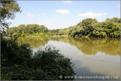 Nach einem Rundgang um die Festung von Timisoara (Temeschwar), die wegen Sanierungsarbeiten ärgerlicherweise komplett eingerüstet war, fuhren Birgit und ich nach Felnac. Auf die hiesige Burgstelle war ich besonders gespannt, da sich hierzu im Internet sowie in Büchern keinerlei Fotos finden ließen. Ich hatte demnach keine Ahnung, was uns erwarten würde, und derartige "Pionierarbeit" macht mich auch immer ein klein wenig stolz. Mit mehreren Detail-Satellitenaufnahmen des Gebietes im Gepäck, machten wir uns auf die Suche. Über Felder liefen wir zum Fluss Mures und dort schließlich in westlicher Richtung durchs Unterholz am Ufer entlang. So viele Bremsen wie dort, hatte ich bislang noch nie erlebt; und diese aggressiven Biester ließen es sich auch nicht nehmen, uns mehrmals zu stechen. Sprich: Am Ende der Tour brannte und juckte es überall. Wenngleich ich dank Anti-Mücken-Spray im Gegensatz zu Birgit zumindest Anfangs noch verschont blieb. Aber irgendwann war dies auch bei mir weggeschwitzt.