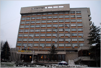 Um 16.00 Uhr kam ich am Hotel Parc gegenüber der Festung an, ein zum Stadtbild passender, hässlicher Betonbau. Die Dame an der Rezeption war sehr freundlich, aber das war auch schon alles. Dank des größtenteils defekten Lichtes tastete ich mich durch den dunklen Flur im zweiten Stock in mein doch recht verwohntes und völlig überheiztes Zimmer. Das Licht im Bad funktionierte ebenfalls nicht (auch eine Möglichkeit, um Strom zu sparen), die Steckdose war kaputt, das Fenster schloss nicht richtig und von draußen drang Straßenlärm hinauf. In Deutschland wäre ich definitiv nicht bereit gewesen, für ein solches Zimmer über 50 Euro zu bezahlen, in rumänischen Hotels ist es scheinbar aber wohl nahezu Standart. Allerdings hatte ich keine Lust, mir im Winter abends noch ein Zimmer suchen zu müssen, weshalb ich das Hotel bereits von Deutschland aus buchte. Zumindest hatte die Wanne im Badezimmer ausnahmsweise mal einen Stöpsel, so dass ich mir Wasser einließ und ein langes Bad nahm, wobei ich die Tür offen lies, um durch das vom Zimmer einfallende Licht überhaupt etwas sehen zu können. Von der Festung waren Schüsse zu hören, was mich jedoch nicht daran hinderte, in der Wanne einzunicken.