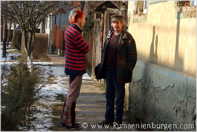 Über unbefestigte aber gut befahrbare Nebenstraßen führte uns der weitere Weg über Valcau de Jos und Valcau de Sus nach Sub Cetate (Burgfeld). Der kleine Fluss war weitestgehend zugefroren und so wagte Miri eine Schlitterpartie auf dem Eis.