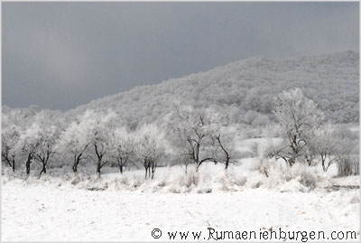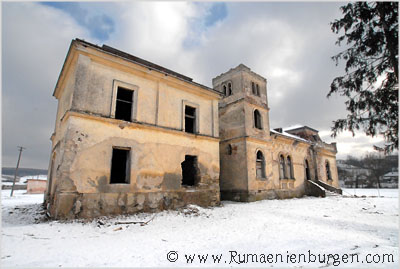 Den nächsten Stopp legten wir am Castelul Banffy in Treznea (Teufelsbrunn) ein, zu dem mir allerdings keine historischen Daten bekannt sind. Erst die dritte der in meiner Karte eingezeichneten Straßen nach Treznea erwies sich als im Winter befahrbar, die beiden vorherigen waren lediglich eingeschneite Feldwege. Zum ersten Mal während meines diesjährigen Urlaubs kam die Sonne raus, dafür fielen die Temperaturen auf eisige -15°C.