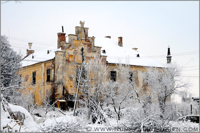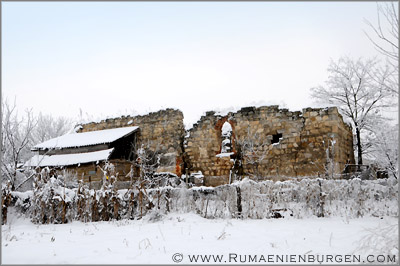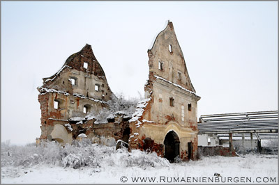 In Cisteiu de Mures (Thalmühl) hatte ich während der Reisevorbereitung eine Schlossruine mit mehreren Gebäuden ausfindig gemacht, die ich bislang noch nicht kannte. Das Haupthaus wurde um 1830 errichtet, während andere Teile, wie das Tor, die Kapelle und eine Scheune, aus dem 17. Jahrhundert stammen. Nach der "Nationalisierung" (= Enteignung) im Jahr 1948 wurde das Anwesen als Landwirtschaftsbetrieb genutzt, nach 1989 zerfiel es zur Ruine. Die abgeschiedene Lage sowie der schlechte bauliche Zustand werden es wohl auch zukünftig verhindern, dass die Ruinen von Touristen entdeckt werden.