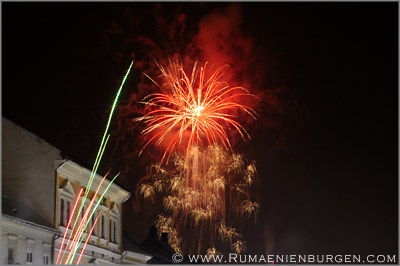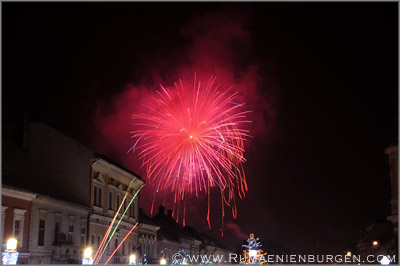 Um kurz vor Mitternacht machten Miri und ich uns auf den Weg zum Marktplatz, um uns das dortige Feuerwerk anzuschauen. Hierfür hätte ich mir allerdings besser ein paar Ersatzschuhe mitgenommen; denn die Pikes mit absolut null Profil waren für die vereisten Gehwege gänzlich ungeeignet! Ich konnte mich kaum auf den Beinen halten und rutschte die ganze Zeit durch die Gegend, während Miri laut fluchend Mühe hatte, mich irgendwie oberhalb des Bodens zu halten. ;-)