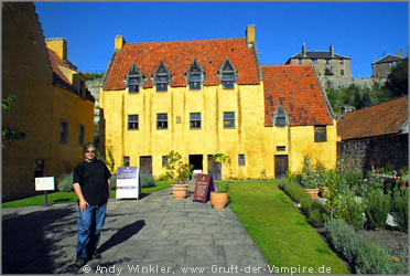Der Culross Palace, vor dem Teile der Abschlussszene aus dem kleinen Vampir gedreht wurden, hatte noch geschlossen und so gingen wir zu dem dahinter liegenden "Hanging Garden" hinauf, welcher bereits im 13. Jahrhundert bestand. Auf mehreren Ebenen wuchsen die unterschiedlichsten Pflanzen; intensive Düfte nach Kräutern, Blüten und Gewürzen wechselten sich ab. Vom oberen Teil hatte man einen wunderschönen Blick über Culross und den Palace auf die Bucht.