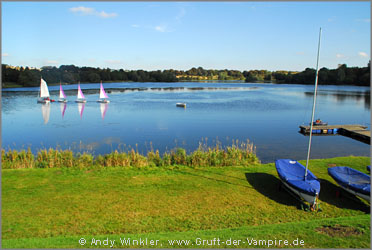 Als nächstes wollten wir zum Hopetoun House nahe Queensferry, um welches sich ebenfalls eine Spukgeschichte rankt. Der Bus dort hin fuhr jedoch erst in einer Stunde, so dass wir eine Pause am See einlegten. Einzelne Boote glitten lautlos über das Wasser, am Ufer putzten sich Schwäne, welche sich pittoresk auf der Oberfläche spiegelten. Eine sehr entspannende Stimmung.
