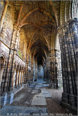 In der schönen Ruine der Abbey ragten Säulen und Gänge in den Himmel, vor denen am Boden mehrere Grabplatten angebracht waren. Gegenüber des hohen Kreuzganges standen kleine Sarkophage und es erforderte zeitweise doch etwas Geduld, um ein Foto ohne Besucher darauf machen zu können.