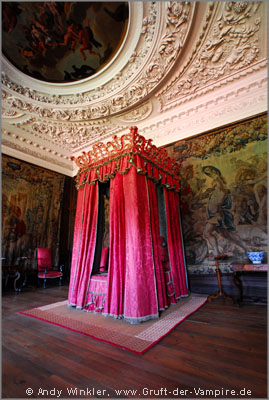 Als nächstes fuhren wir zum Parliament von Edinburgh, welches in meinem Reiseführer als "Highlight" bezeichnet wird. Warum, ist mir jedoch nicht ganz klar. Den Stilmix aus verschiedenen Formen und Materialien mögen andere vielleicht interessant finden, ich hingegen fand es einfach nur hässlich, so dass ich nicht mal ein Foto davon machte. Aber unser eigentliches Ziel lag auch gegenüber des Parliaments: Der Palace of Holyroodhouse. Das Gebäude befindet sich in Besitz der Queen, kann in Teilen in Verbindung mit einer Audioführung jedoch besichtigt werden. Die meisten Besucher machten, wohl aufgrund des hohen Eintrittspreises, lediglich Fotos durchs Tor. Wir jedoch gingen hinein, nachdem ich mir in einem kleinen Laden ein Buch über schottische Geistergeschichten und Spukorte gekauft hatte. Den im vorderen Teil völlig überteuerten Touri-Shop mit allerlei "Queen-Kitsch" hinter uns gelassen, umrundeten wir den Palast sowie die angrenzende Ruine der Hollyrood Abbey erst mal von außen. Im Park sind noch Fundamentreste der alten Abtei zu sehen, von wo aus man einen schönen Blick auf die nahe gelegenen Salisbury Cracks hat. Gelbweißes Pampasgras warf einen tollen Schatten auf den akkurat geschnittenen Rasen vor den Palastmauern. Im Inneren des Palastes, mit seinen schmuckvoll verzierten Räumen, hohen Stuckdecken, großflächigen Wandgemälden und historischen Möbeln, herrschte striktes Fotoverbot. Da bin ich wohl "zufällig" ab und zu an meinen Auslöser gekommen ;-)