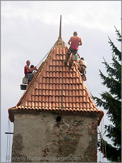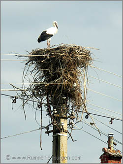 Vorbei an der Kirchenburg in Miercurea Sibiului (Reußmarkt) machten wir einen weiteren Fotostopp in Cristian (Großau). Die Rückseite der Kirchenburg bietet aus fotografischer Sicht ein perfektes Postkartenmotiv. Auf dem Dach eines Seitenturmes hingen wie Fliegen Männer an Seilen, welche das Dach reparierten und vor der Kirchenburg saßen Störche in ihren Nestern. Alles in allem eine schon fast unwirklich anmutende Kulisse. Überhaupt sieht man in Transsilvanien (Siebenbürgen) nahezu in jedem zweiten Dorf mindestens ein Storchennest - und nur selten ist es unbesetzt.