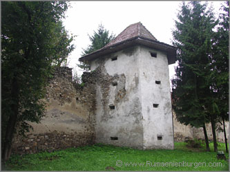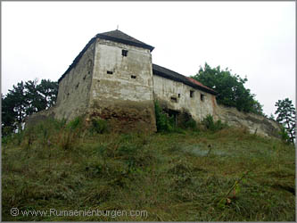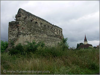 Im Anschluss an einen kurzen Fotostopp beim kleinen ehemaligen Schloss in Haghigh, welches noch heute bewohnt ist, bog ich dort rechts nach Feldioara (Marienburg) ab. Die Randbezirke mit ihren Wohnblocks sind nicht gerade schön, entstanden jedoch einst aufgrund der dortigen Minen und Industrie. Im alten Ortskern finden sich heute dagegen gleich drei Wehrbauten: Die Kirchenburg, die Ruinenreste der Marienburg im Ort sowie die wenig außerhalb liegende Ruine der so genannten "Ur-Marienburg" (einst lediglich das Vorwerk zur eigentlichen Marienburg, von welcher heute allerdings kaum mehr etwas steht und deren Mauerreste zudem meist in Privatgrundstücke eingebunden sind). Von der Kirchenburg aus führt ein Fahrweg bis unter die sehenswerte Ruine der "Ur-Marienburg", bei gutem Wetter auch ein schöner Platz für ein Picknick. Mehrere Mauerreste auf beiden Seiten, ein Turmrest, Durchgänge und die Ruinen der einstigen Toranlage sind noch zu sehen. Zudem blickt man vom Burgberg genau auf die Kirchenburg von Feldioara und auf die Mauerreste der Marienburg.