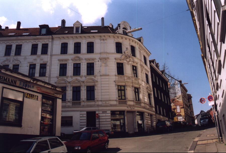 Gaststätte im Erdgeschoss ist mittlerweile einem Buchladen gewichen, die